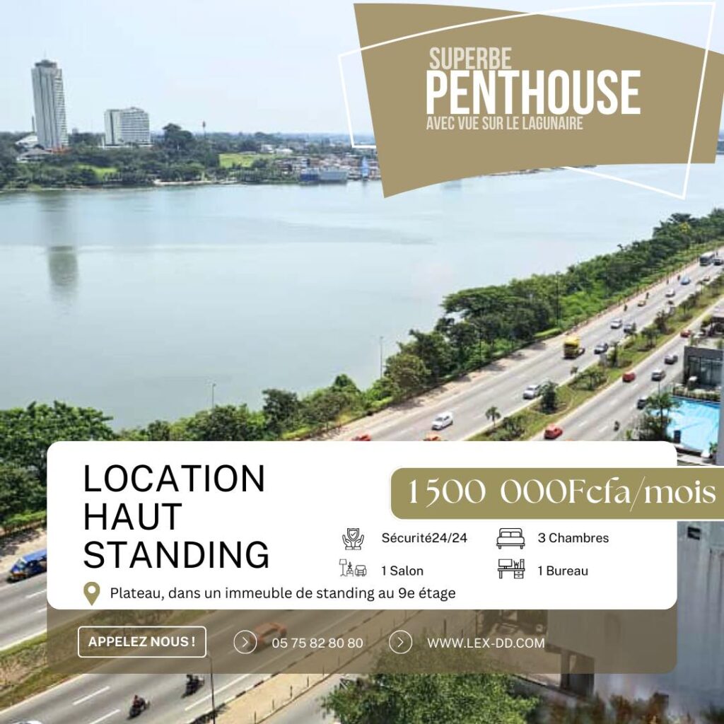 LOCATION D’UN PENTHOUSE HAUT STANDING, située au Plateau, dans un immeuble de standing au 9e étage