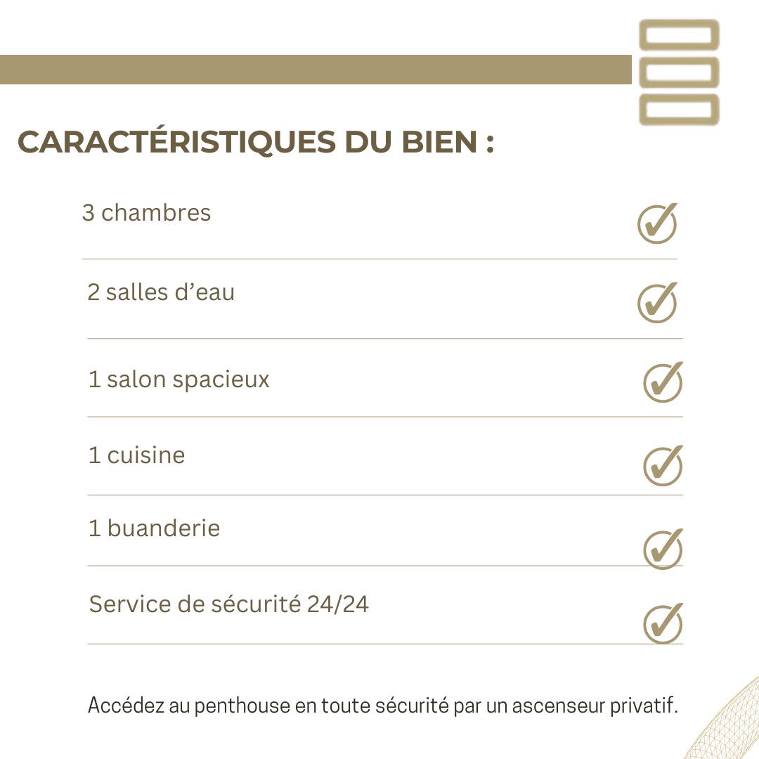 LOCATION D’UN PENTHOUSE HAUT STANDING, située au Plateau, dans un immeuble de standing au 9e étage
